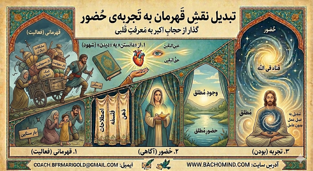 این تغییر، دقیقاً همان عبور از منِ ذهنی (Ego) به سمت جانِ آگاه است. تفاوت ظریف اما عمیقی بین قهرمان بودن و کمک کردن وجود دارد که نشان می‌دهد آیا فرد از حجاب‌های نفسانی عبور کرده‌ است یا نه؟