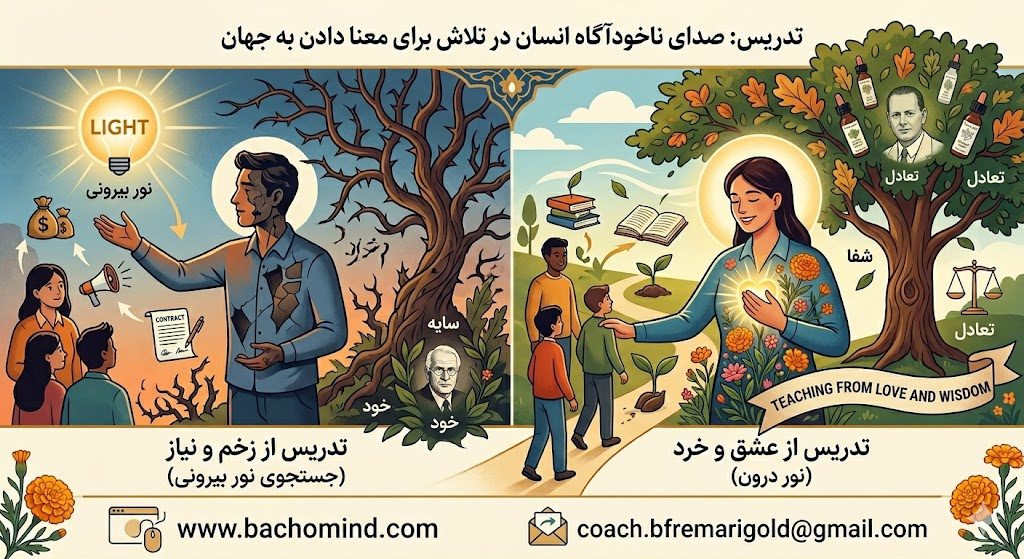 چنین مدرسی، به جای فروختنِ صرفِ یک بسته آموزشی، در حال انتقال یک تجربه زیسته است. او میداند که هدف نهایی، نه وابستگی شاگرد به معلم، بلکه بیدار کردنِ شفادهنده و آموزگارِ درونیِ خودِ شاگرد است.